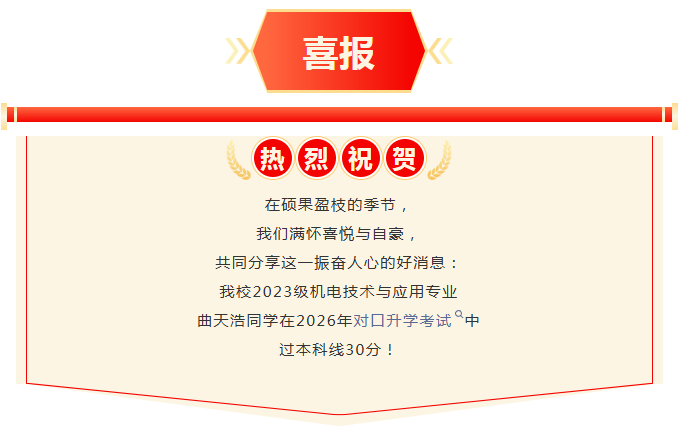 下一条:热烈祝贺我校2023级又一学子过本科线30分!